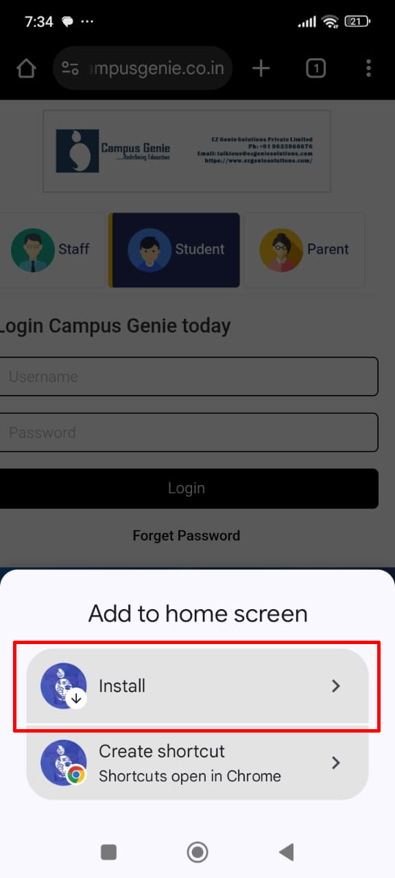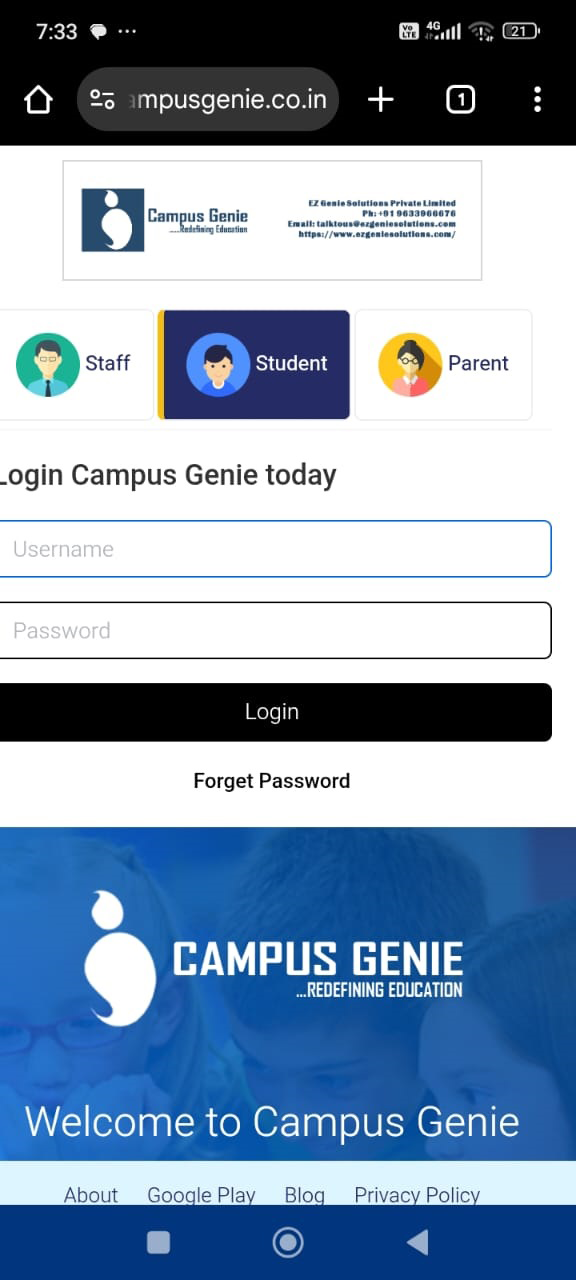 Chrome browser on your mobile and type your campus url (https://bjcsi.campusgenie.co.in) in the search bar